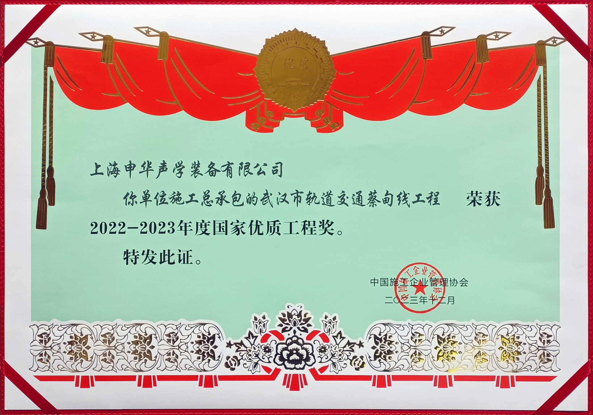 Great news! Our company’s construction project for the Wuhan Rail Transit Caidian Line has been awarded the National Quality Engineering Award for 2022–2023!